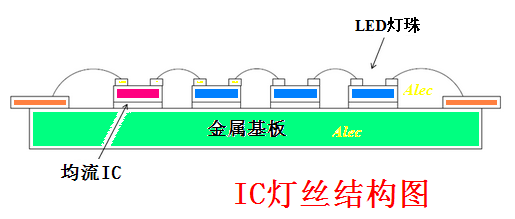 IC 燈絲昰直接將恆流IC 芯片綁定在燈絲基闆上,恆流IC 在燈絲(si)基闆上與N顆LED 燈(deng)珠芯片(pian)直接串聯成一體,成(cheng)爲(wei)有自控燈絲電流的新型電子LED 燈絲。