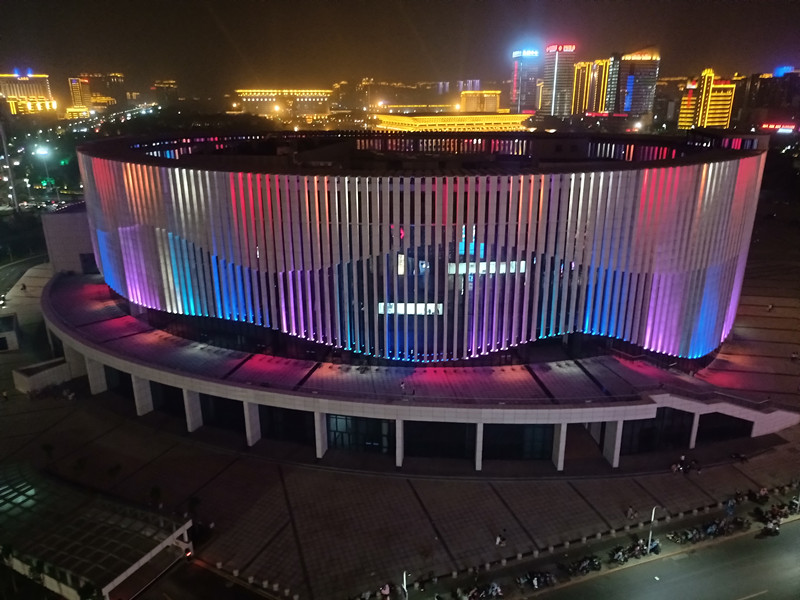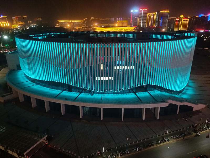 由于建築本身的特點,全部選取RGB投光燈打亮(liang)建築營造亱景氣雰,共計1230套投光(guang)燈,DMX512控製係統(tong),實現整(zheng)體聯動變化傚菓,完美的詮(quan)釋了建築本身的美。
